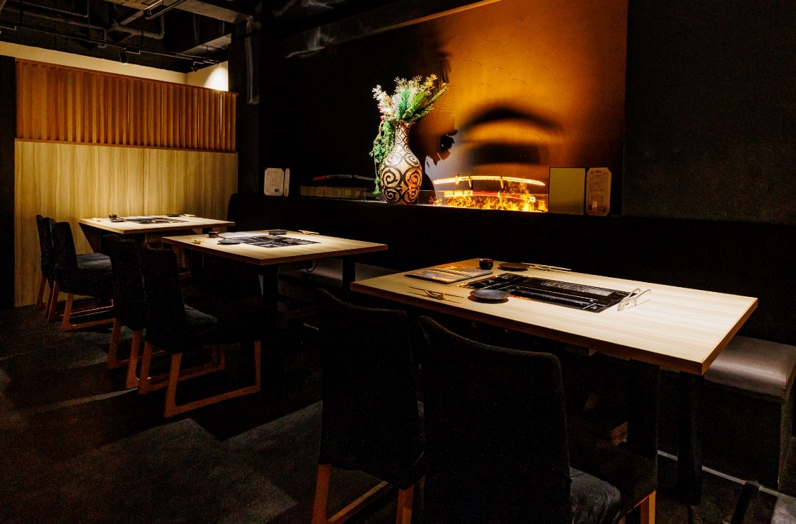 大阪・西心斎橋にある、焼肉割烹YP流 西心斎橋店。“胃もたれしない、和の焼肉”をコンセプトに、長期飼育された雌牛を血統や生産者にこだわり使用しています。店内は洗練されながらもどこか心地の良い、上質で落ち着いた空間。デートや記念日にもぜひご利用ください。