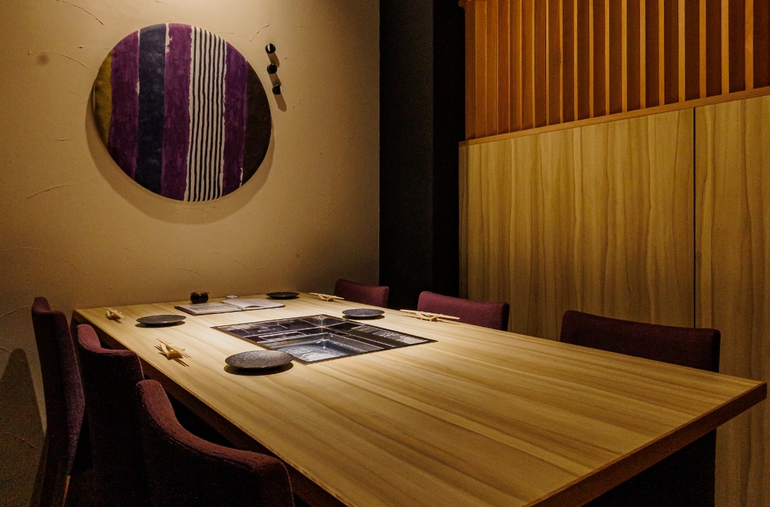 迫力のあるカウンター席では、熟練の職人が織りなす匠の肉捌きを間近でご体感いただきながら焼肉をお楽しみください。肉の捌き方、一つひとつの動きが、焼肉の奥深さを物語ります。五感で味わう贅沢な焼肉時間を、ぜひご堪能ください。