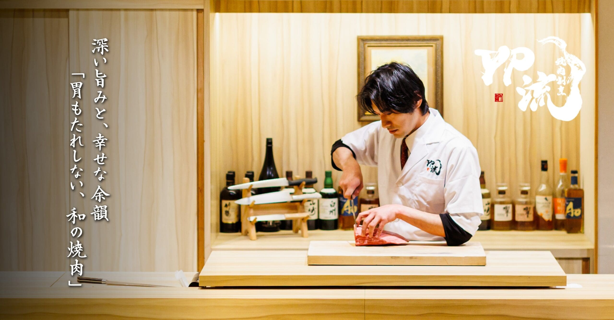 大阪・西心斎橋にある、焼肉割烹YP流 西心斎橋店。“胃もたれしない、和の焼肉”をコンセプトに、長期飼育された雌牛を血統や生産者にこだわり使用しています。店内は洗練されながらもどこか心地の良い、上質で落ち着いた空間。デートや記念日にもぜひご利用ください。