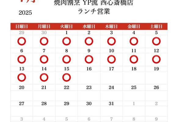 7月前半のランチ営業日でございます。 7月後半の営業は現在調節中でございます。 また7月前半を目処に 公開させて頂きます。 今月もよろしくお願い致します。 ※ランチは西心斎橋店限定でございます。 大阪…